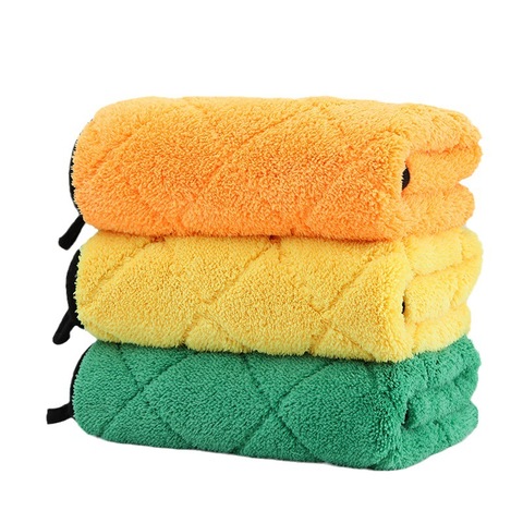 Serviettes de lavage de voiture en molleton de corail personnalisées douces et solides Double face épaissir les torchons de cuisine compressés serviette de nettoyage tissée